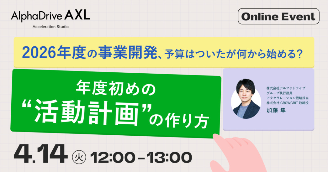 AlphaDriveは「人の可能性をひらく」をパーパスに、さまざまな企業や組織に向けた新規事業開発の伴走支援をご提供しています。実践知によるコンサルティングを中心に、SaaSプロダクトやメディアの力も使った一気通貫でのソリューションが特徴です。