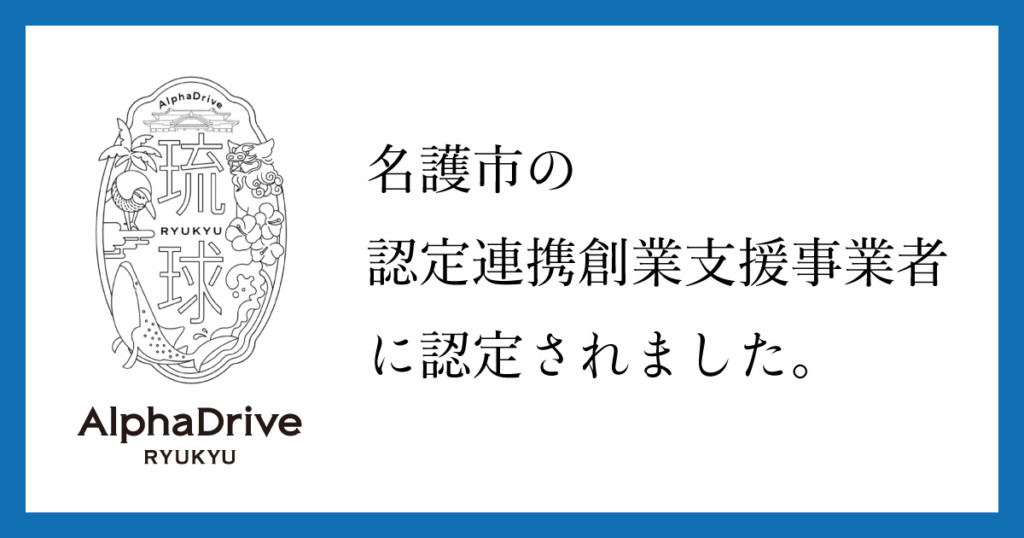 株式会社アルファドライブは、この度、沖縄県名護市より「認定連携創業支援事業者」として認定されたことをお知らせいたします